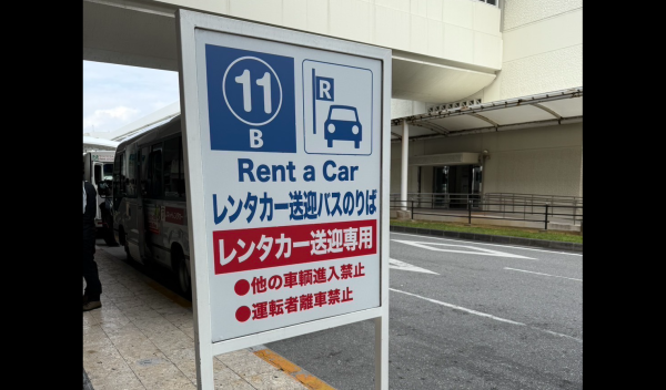 那覇空港1階を外に出ていただき、11番レーン B、のレンタカー送迎用乗り場より送迎車が出発いたします。
